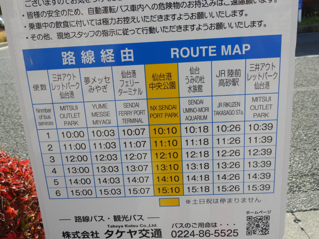 アウトレットを11時に出発した第2便。このあと、見本市、フェリーターミナルまで走行した時に、次のようなアナウンスがありました。