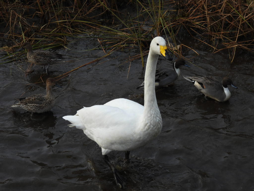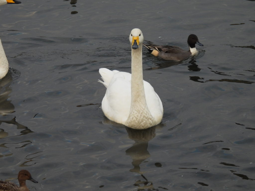 しばらくすると、いつもおコメを給餌している地元の方がいらっしゃって新米を給餌すると、アドちゃん、ムーアちゃん、ロクちゃん2世、ポントちゃん、飛来組オオハクチョウさん、ライトちゃん夫妻も食べに来ました。