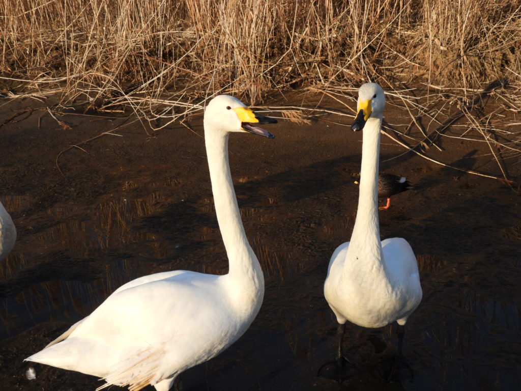 そんなムーアちゃんは、四六時中、ノンちゃんと行動を共にするようになりました。ムーアちゃんは、ノンちゃんと「コォ!コォ!」と大きな声をあげて、飛来のオオハクチョウさんたちを一緒に威嚇します。